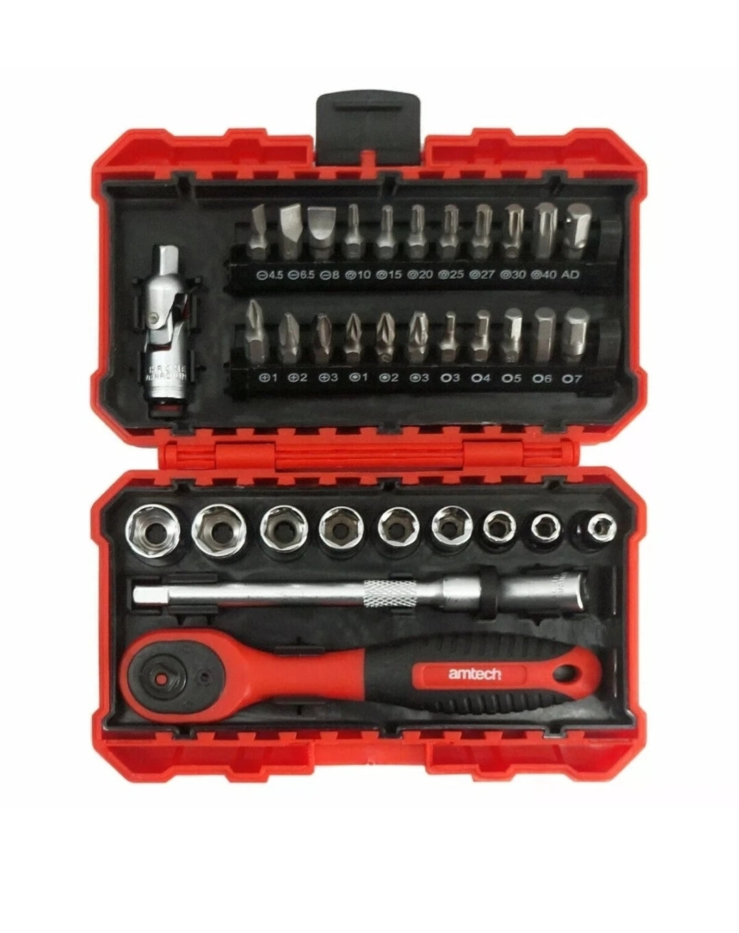 The set includes 22 assorted 25mm bits, including PH, PZ, flat, hex. and Torx®Amtech 35 Piece 1/4in Drive Socket & Accessory Set Metric 4 - 12mm.